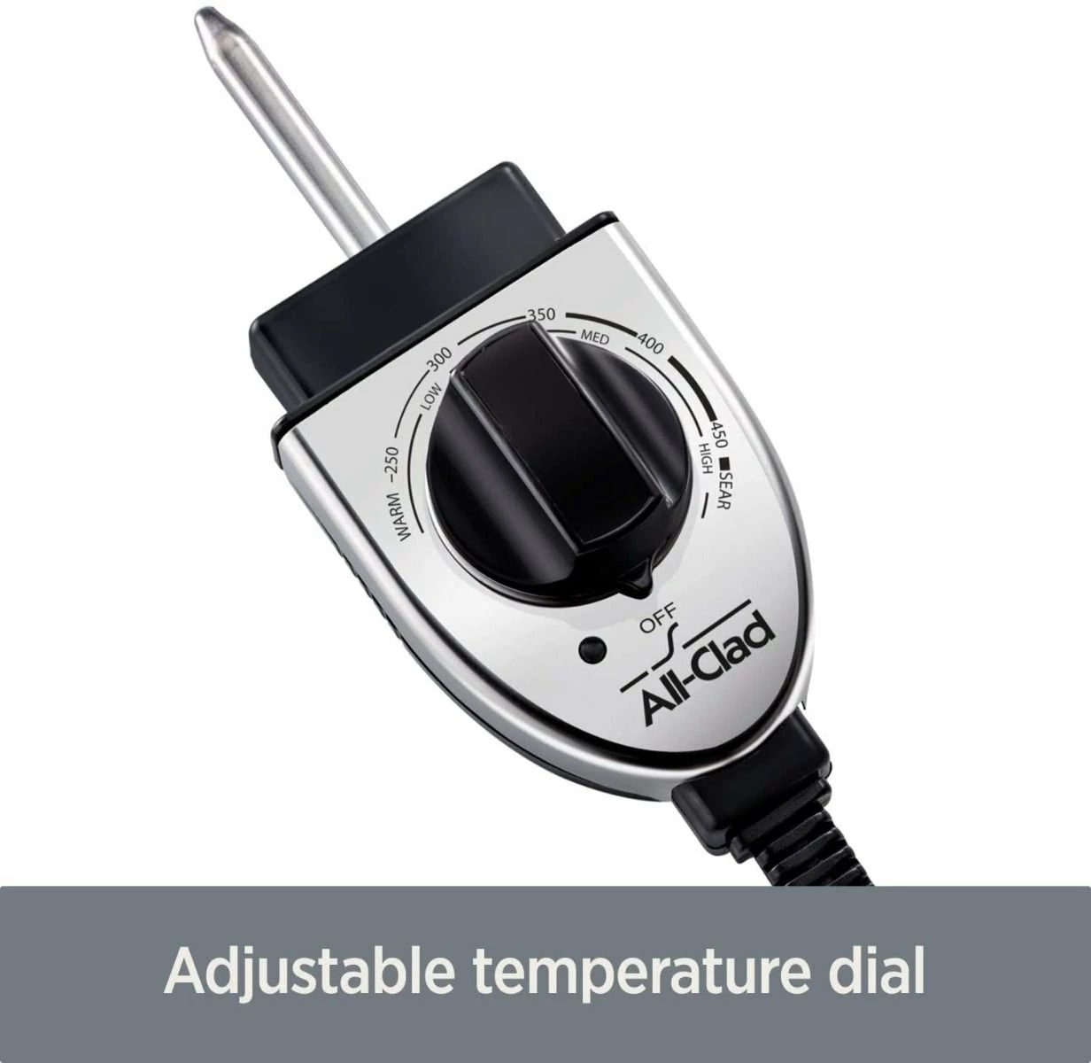 - Adjustable temperature on the dial from 250°F to 450°F – precise at 50 degree increments