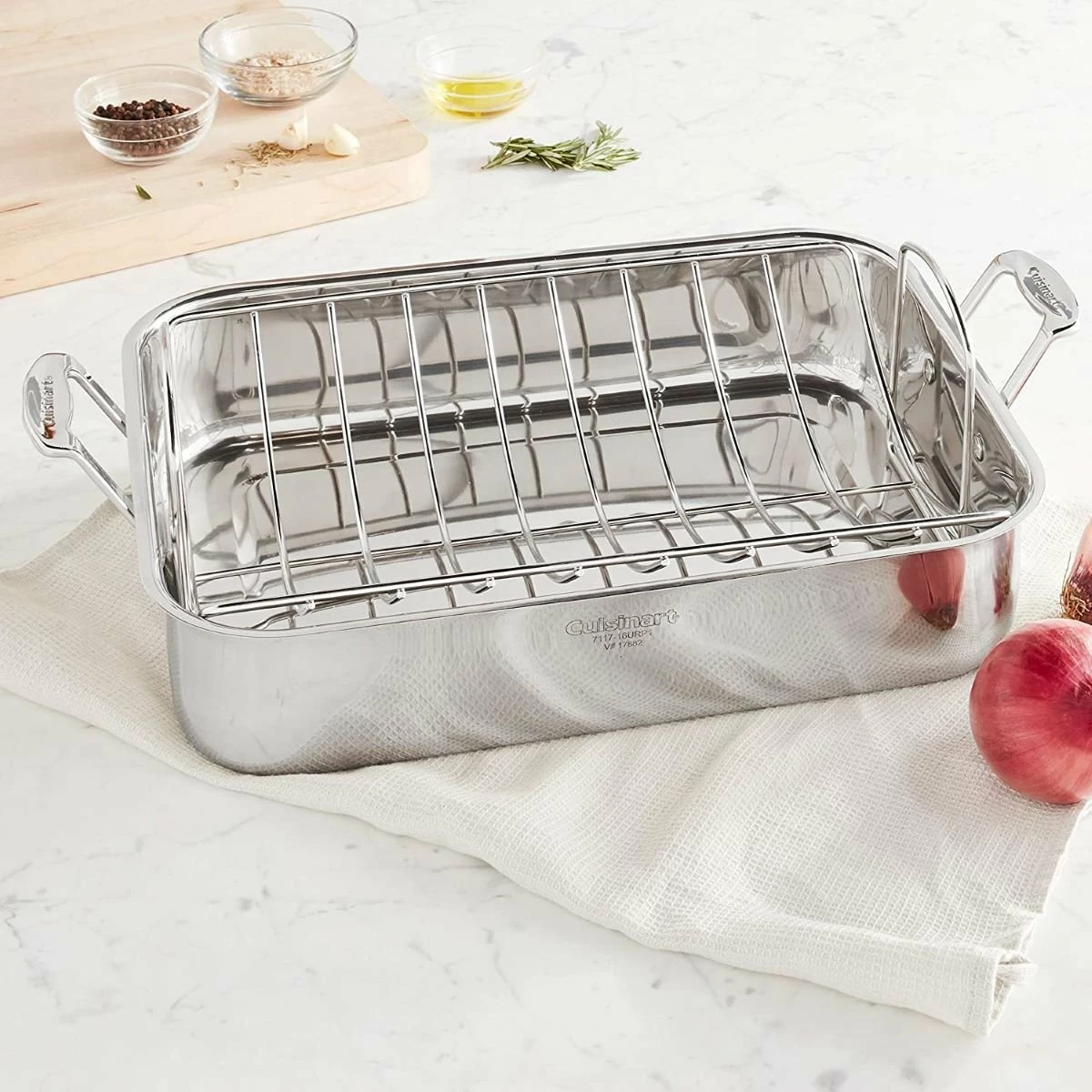 For any holiday or special family gathering, you need to be able to prepare a large amount of food. But quantity is still second to quality- the food still has to be delicious. And no recipes are as time-honored or delicious as the classic roasts! And now, you can make your own roasted recipes with ease with the 16″ Chef’s Classic Stainless Steel Rectangular Roaster with Rack from world-renowned kitchen appliance brand Cuisinart!