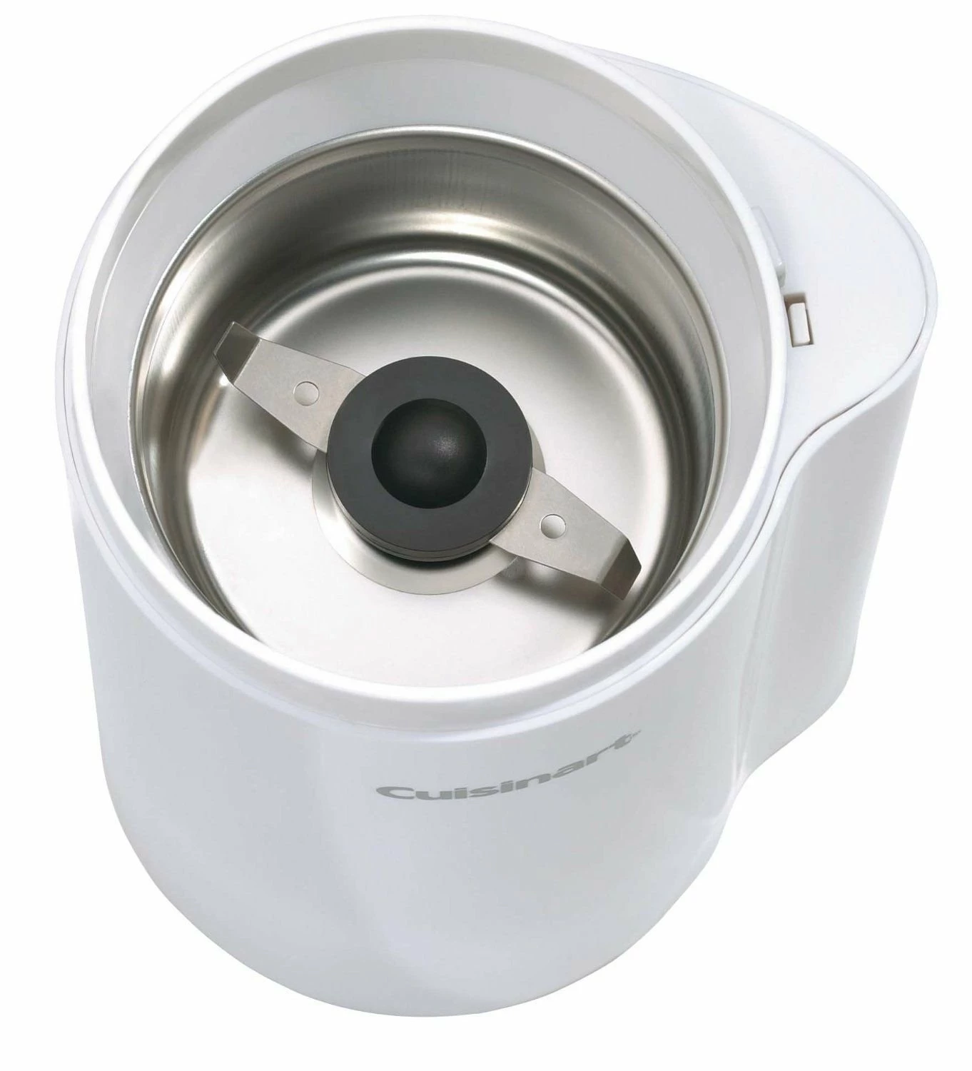 Jumpstart your early morning routine with an aromatic cup of fresh coffee. With the Cuisinart Coffee Bar Grinder, you will achieve a premium fineness of grounds needed for espresso, or thick grinds for French pressed coffee, all in the comfort of your home. This grinder features measurement markings on the removable lid. Grind your favorite coffee beans for a full bodied cup of coffee. Make cold or hot brew with fresh grounds that you’ve prepared at home. What’s more the Cuisinart White Coffee Bar Grinder can be used to grind your favorite spices and herbs to use in homemade meals. The Cuisinart Coffee Bar Grinder is a great compact grinder that will give you the best flavors in your coffee.