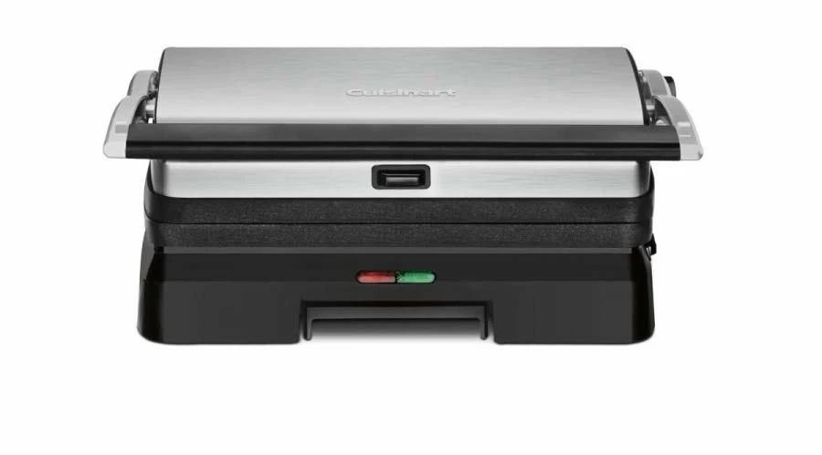 The preset temperature is versatile for evenly cooking burgers, steaks and sandwiches of your choice. With ‘On’ and ‘Ready’ indicator lights, you’ll always know when your Cuisinart Grill and Panini Press is hot and ready for you to cook delicious meals. When grilling fattier foods, feel free to lift the adjustable front feet to ensure efficient grease drainage into the integrated drip tray, providing healthier meal options!