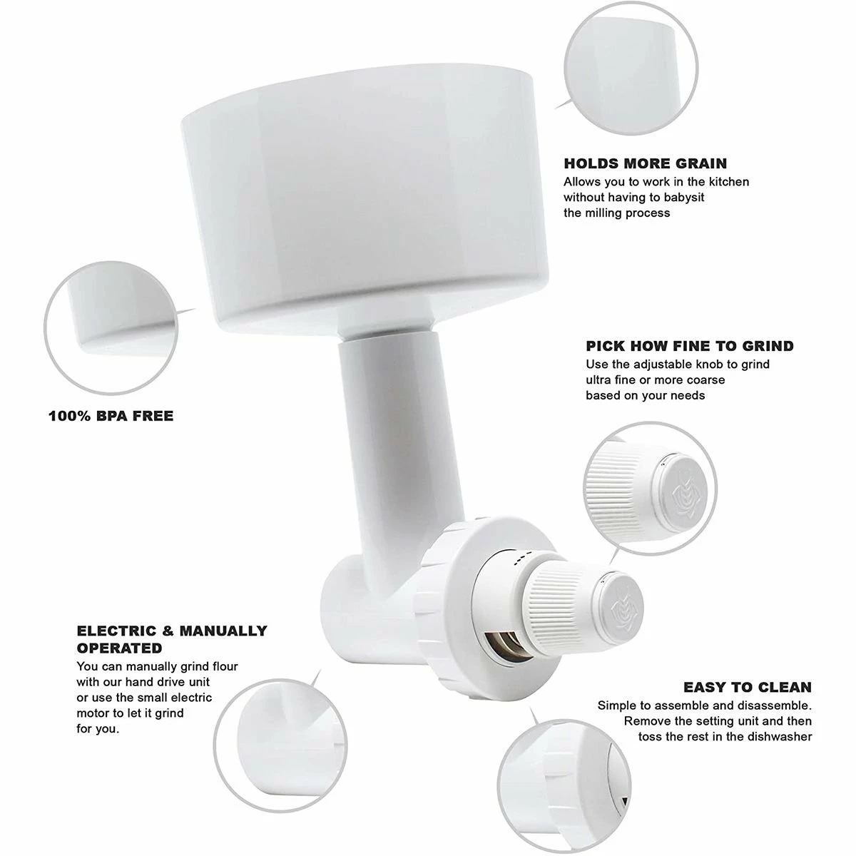 - Compatible with all Family Grain Mill Attachments (sold separately)