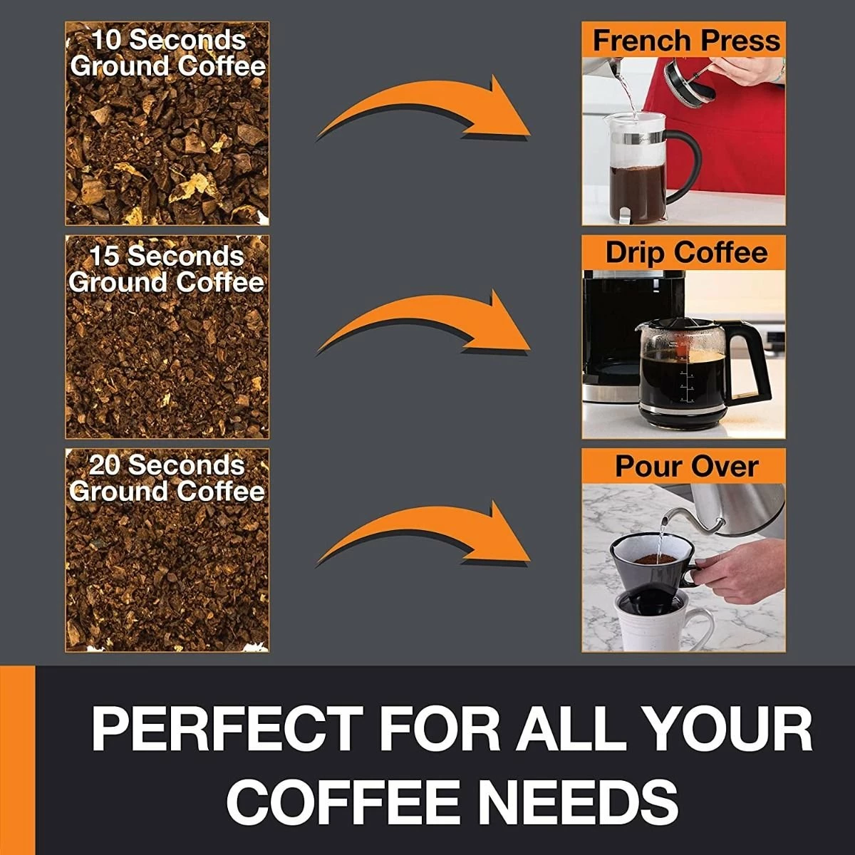 - Versatile! Grind whole bean coffee, hard spices like peppercorn, and dry herbs for flavorful meals