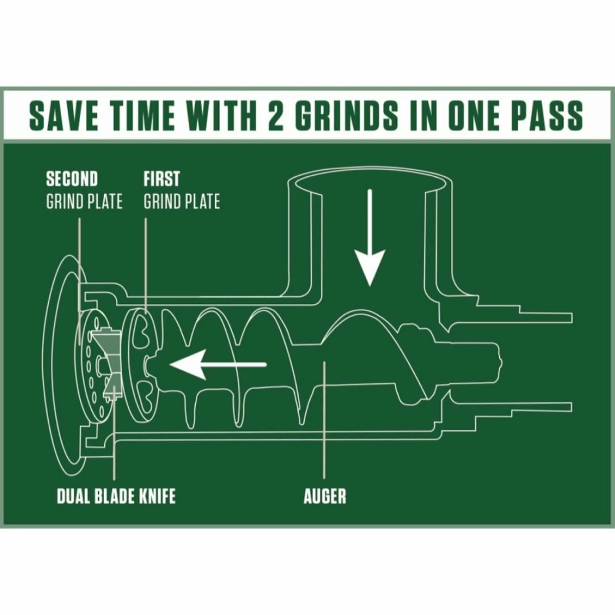 LEM Big Bite Stainless Dual Grind Attachment Features:
