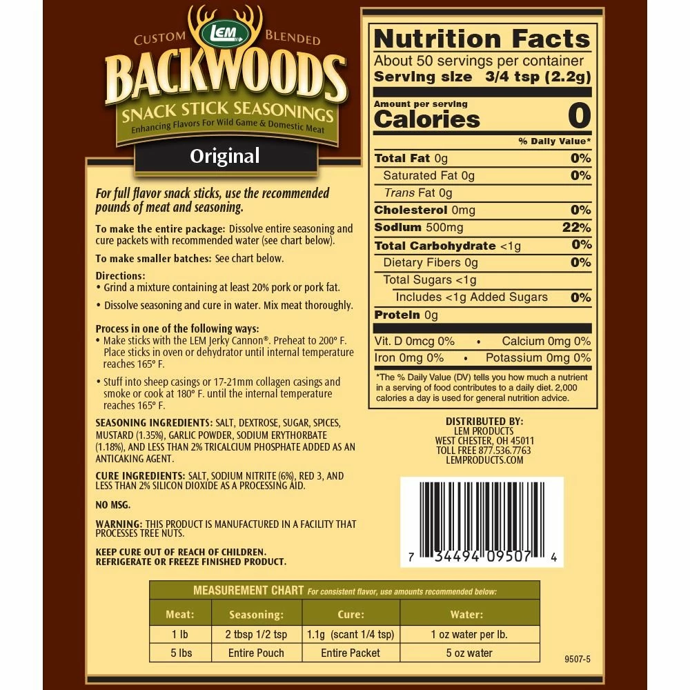 - 2 bags of Backwoods™ Seasonings: Snack Stick and Original Jerky