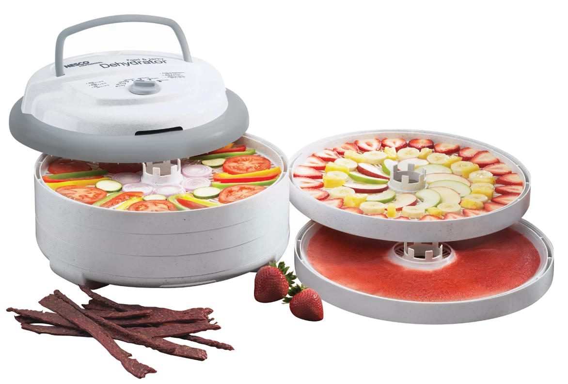 Nesco dehydrator trays are top-rack dishwasher safe (must be removed before drying cycle). Hand-washing recommended.