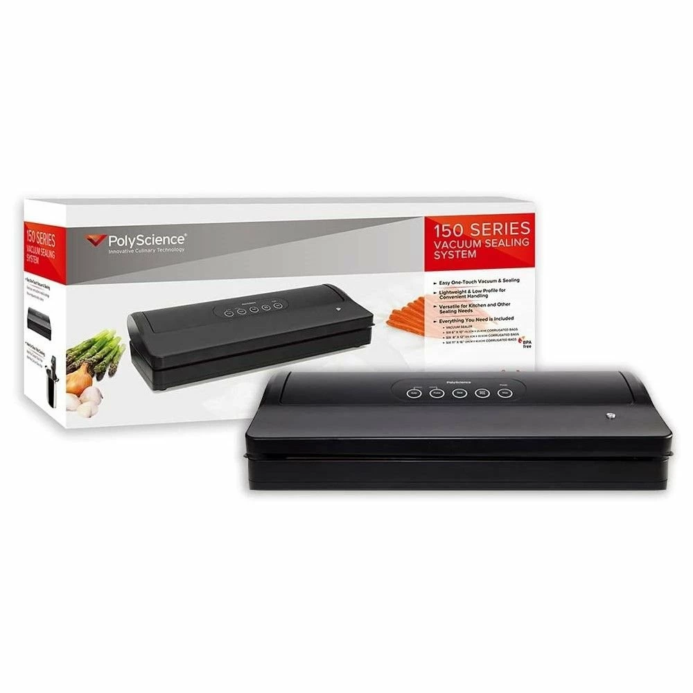 Vacuum sealing keeps food fresher for longer in the refrigerator, freezer, and pantry, eliminating waste and reducing food costs. And for one to do the job over and over again, the PolyScience 150 Series Vacuum Sealing System is a dream machine for sealing your foods. Made from plastic, this Vacuum Sealer gives you the capability to easily prep for sous vide. A vacuum sealer is ideal for food preservation, whether it is freezing your fresh produce from the garden or grocery store without freezer burn or nonperishable foods. This PolyScience 150 Series External Vacuum Sealer includes six 1-pint bags, six 1-quart bags, and six 1-gallon bags to get you started on sealing up your foods. Seal Plus ensures an air-tight seal every time. The vacuum pulse option allows you to apply just the right amount of vacuum, while the external vacuum port lets you vacuum seal both bags and canisters. You may also use your vacuum sealer to store collectibles safely, stop silver and other jewelry from oxidizing and tarnishing, and protect keepsakes and other valuable documents from the elements. With your new PolyScience 150 Series External Vacuum Sealer, you are ready for food storage, preservation, and the advanced sous vide cooking technique!