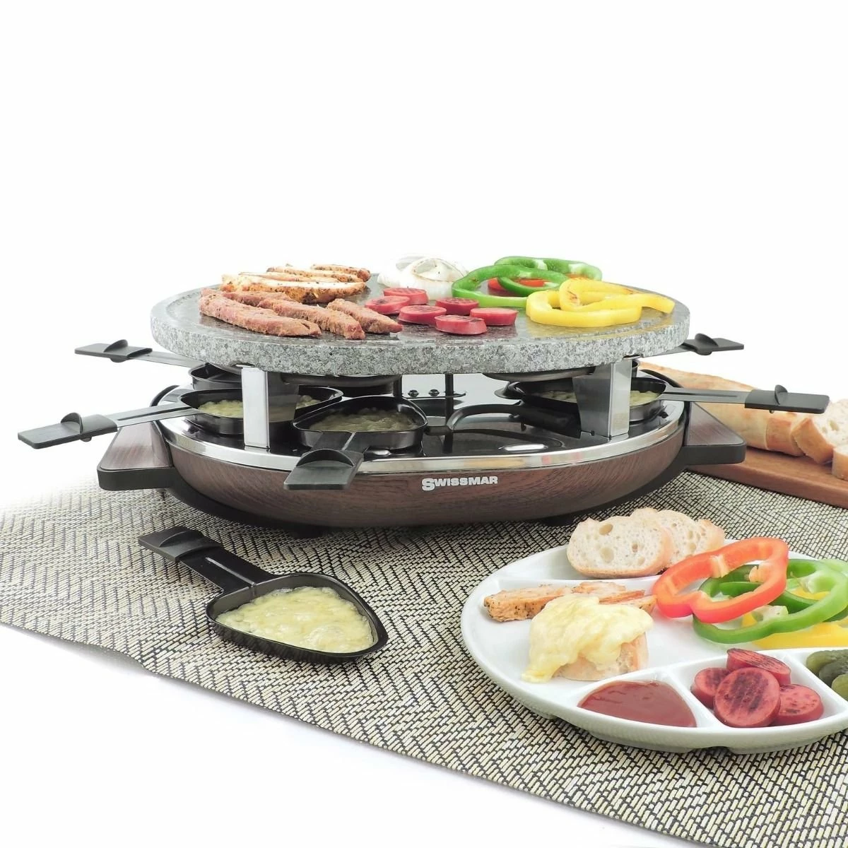 Swissmar Matterhorn 8 Person Raclette with Granite Stone Grill Top – Faux Wood Features: